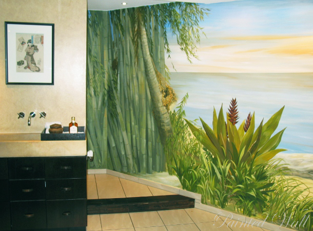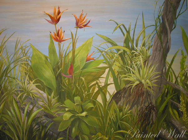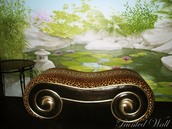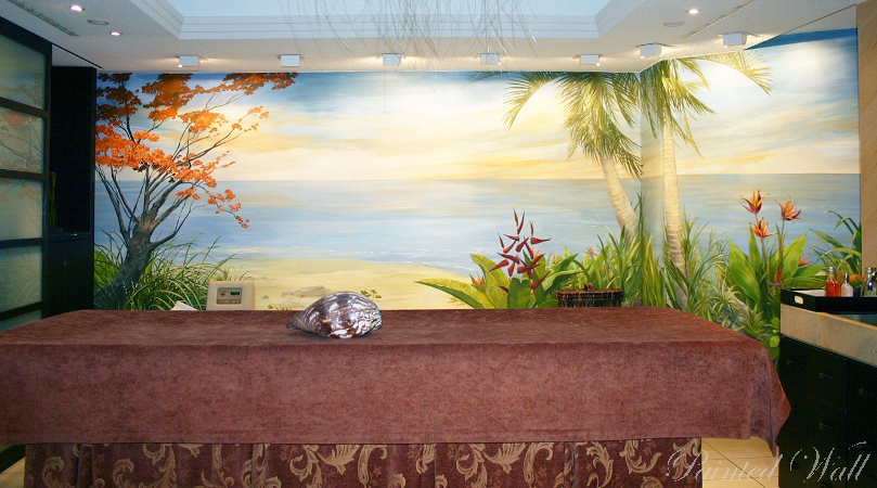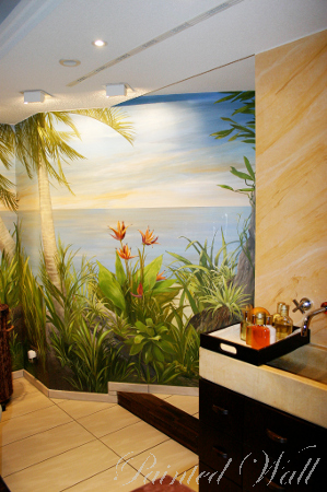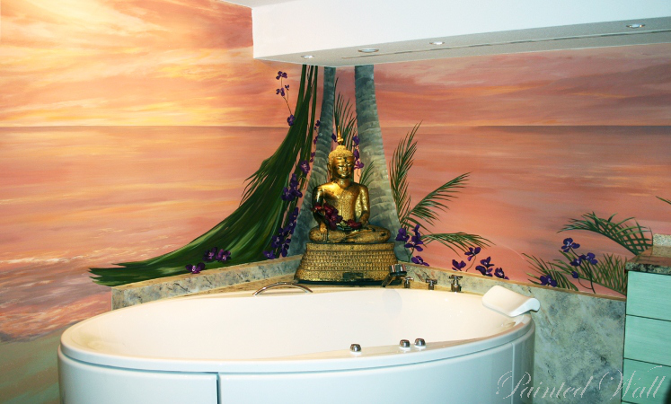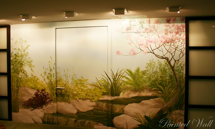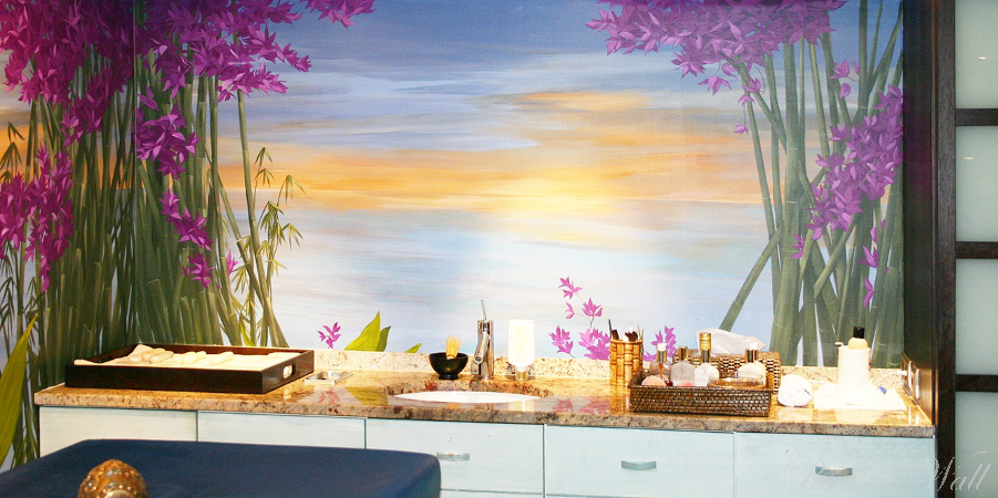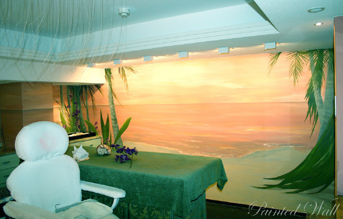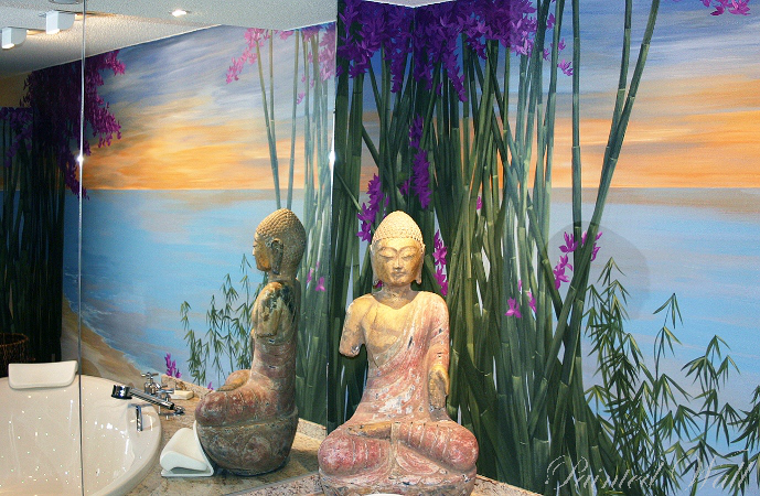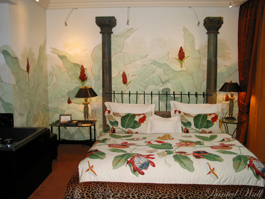 The five-star hotel „Savoy“ in Cologne stands out for its impressive room decoration. Here we decorated a beauty room, an Asian suite and the wellness area with wall paintings. We chose the tropical flora with its impressive and magnificent colours and forms as subject of the illusionistic painting .