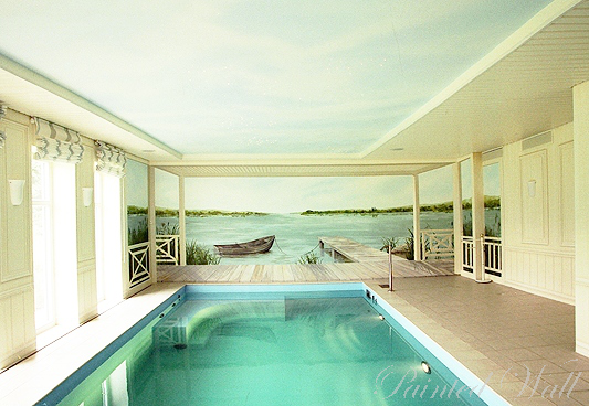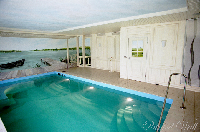 A lake in the north of Germany. The colours are somewhat cooler here, in accordance with the landscape. All wall panellings have been painted in elaborate trompe l'oeil–technique.